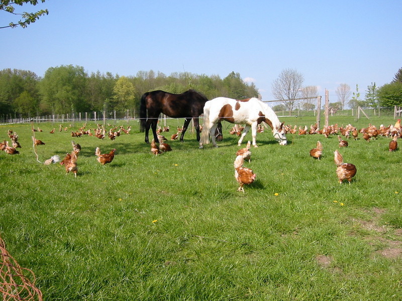 Für die Tiere so wertvolles tierisches Eiweiß ist in der ökologischen Haltung nicht erlaubt, weil die Kreisläufe nicht gesichert sind. Daher